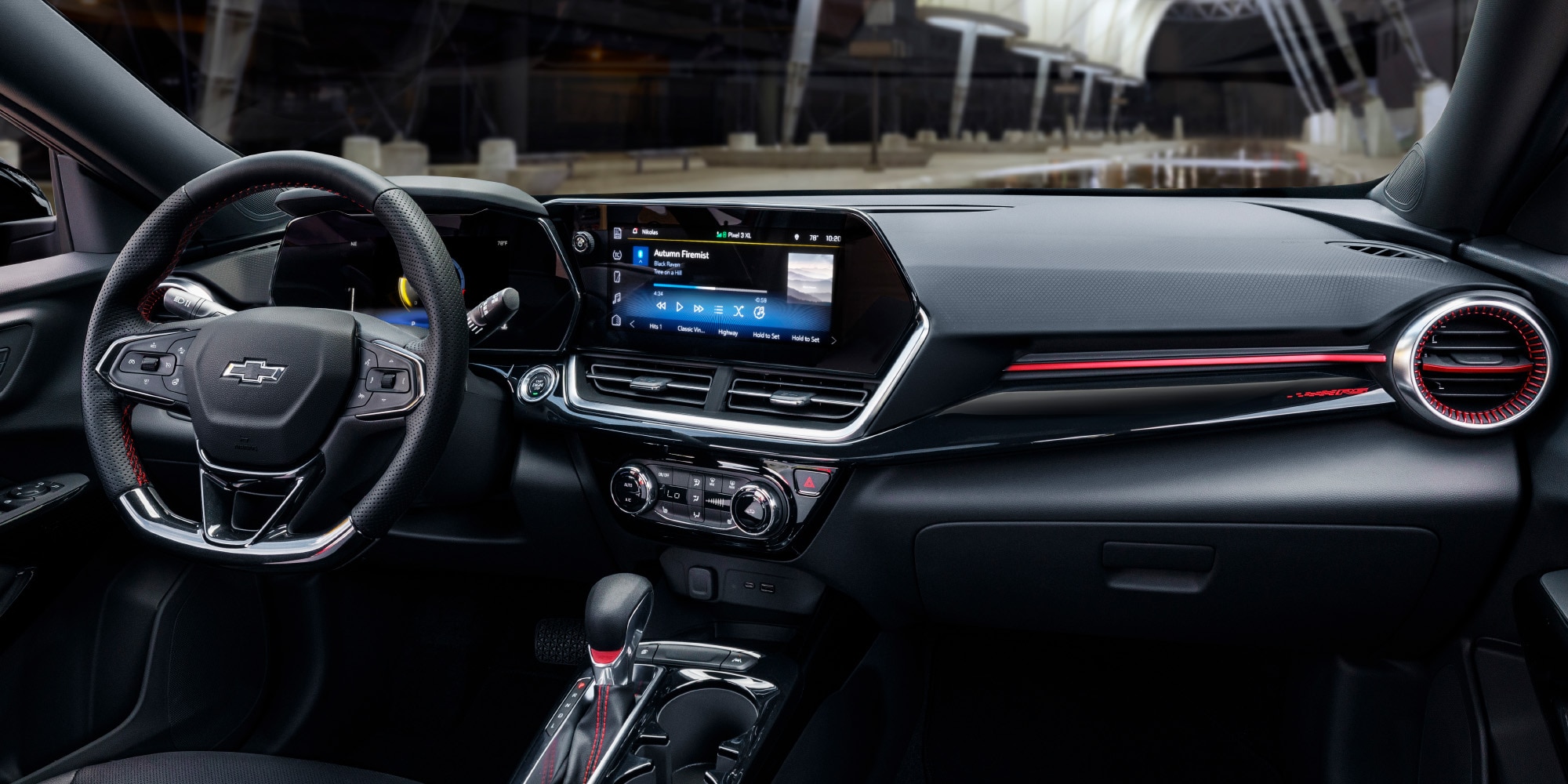 - Infoentretenimiento Chevrolet con pantalla táctil a color de 11”.